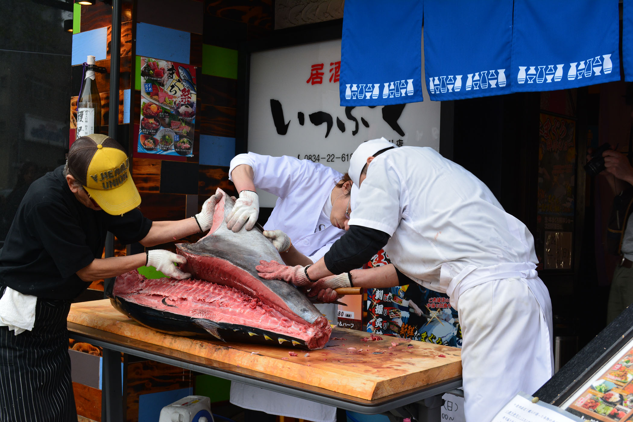 また定期的に約80kgの生本マグロ解体ショーも行っておりご高評をいただいております。
